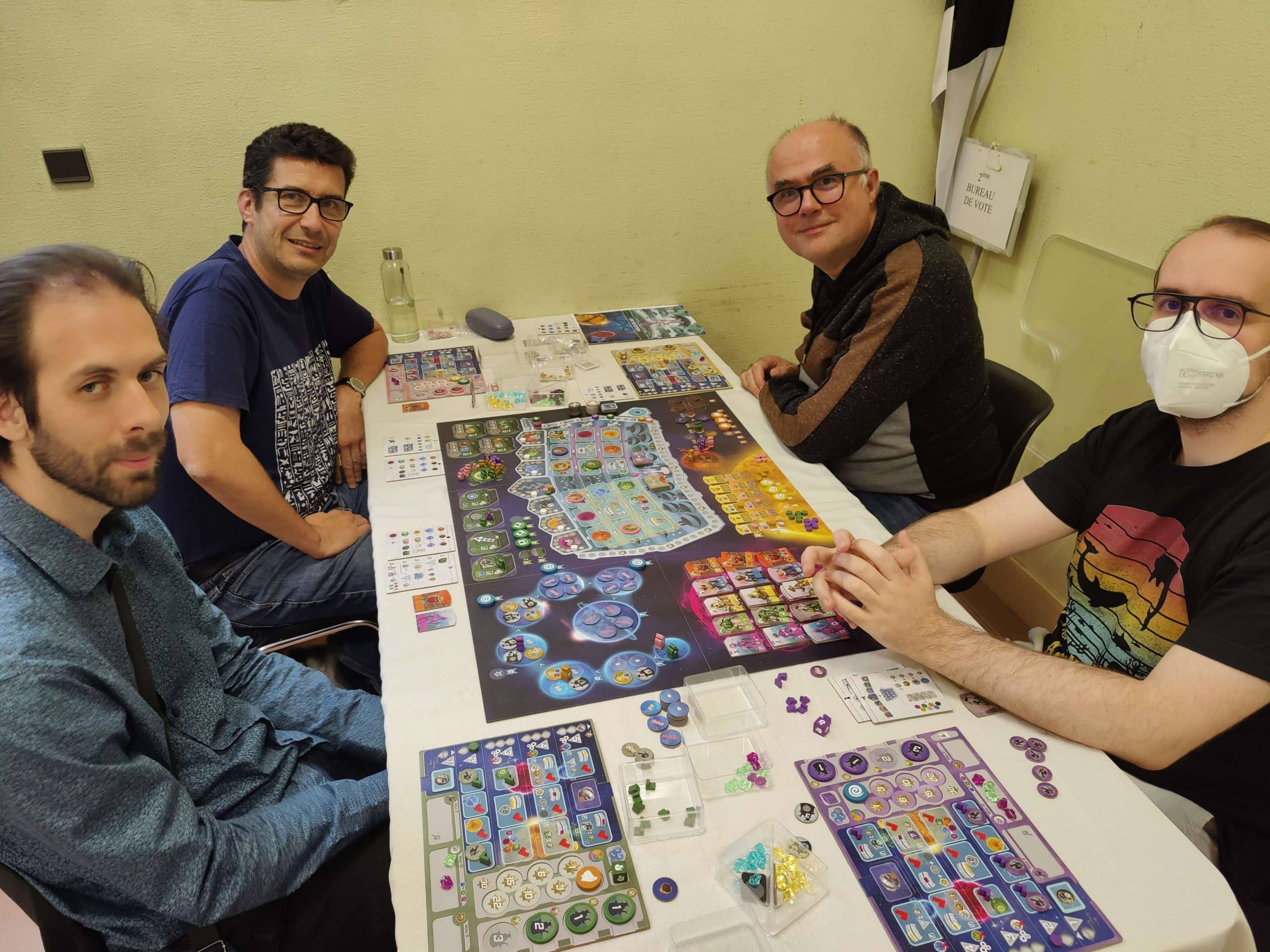 Après le départ d’Éléonore et Joël ; Pierre-Henri, Sophie et Son se sont joints à la table pour continuer les nombreuses parties de The Crew.