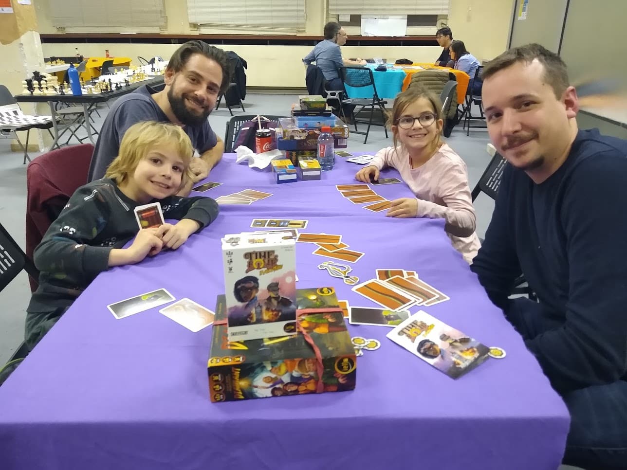 Table violette, Johann, ses deux enfants et Xavier ont joué à Time Bomb Evolution.